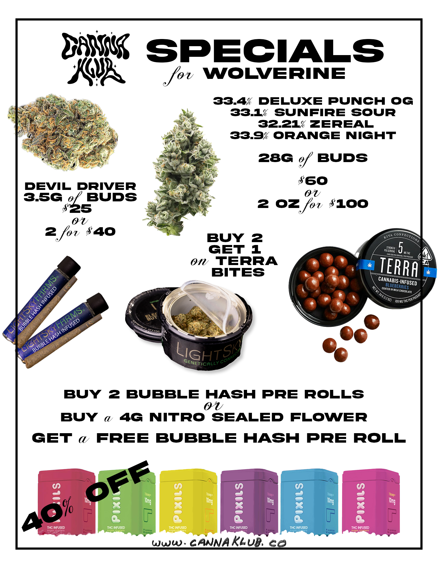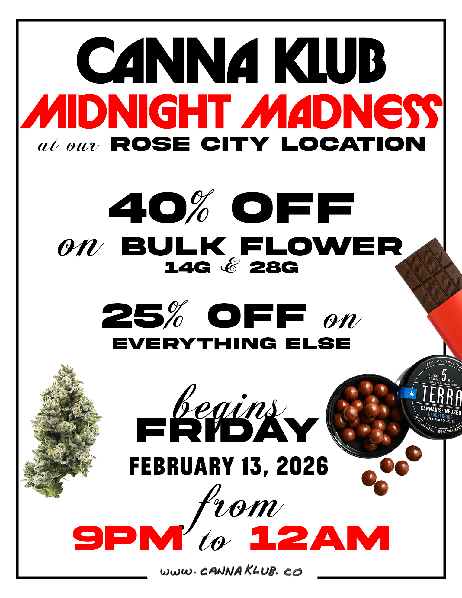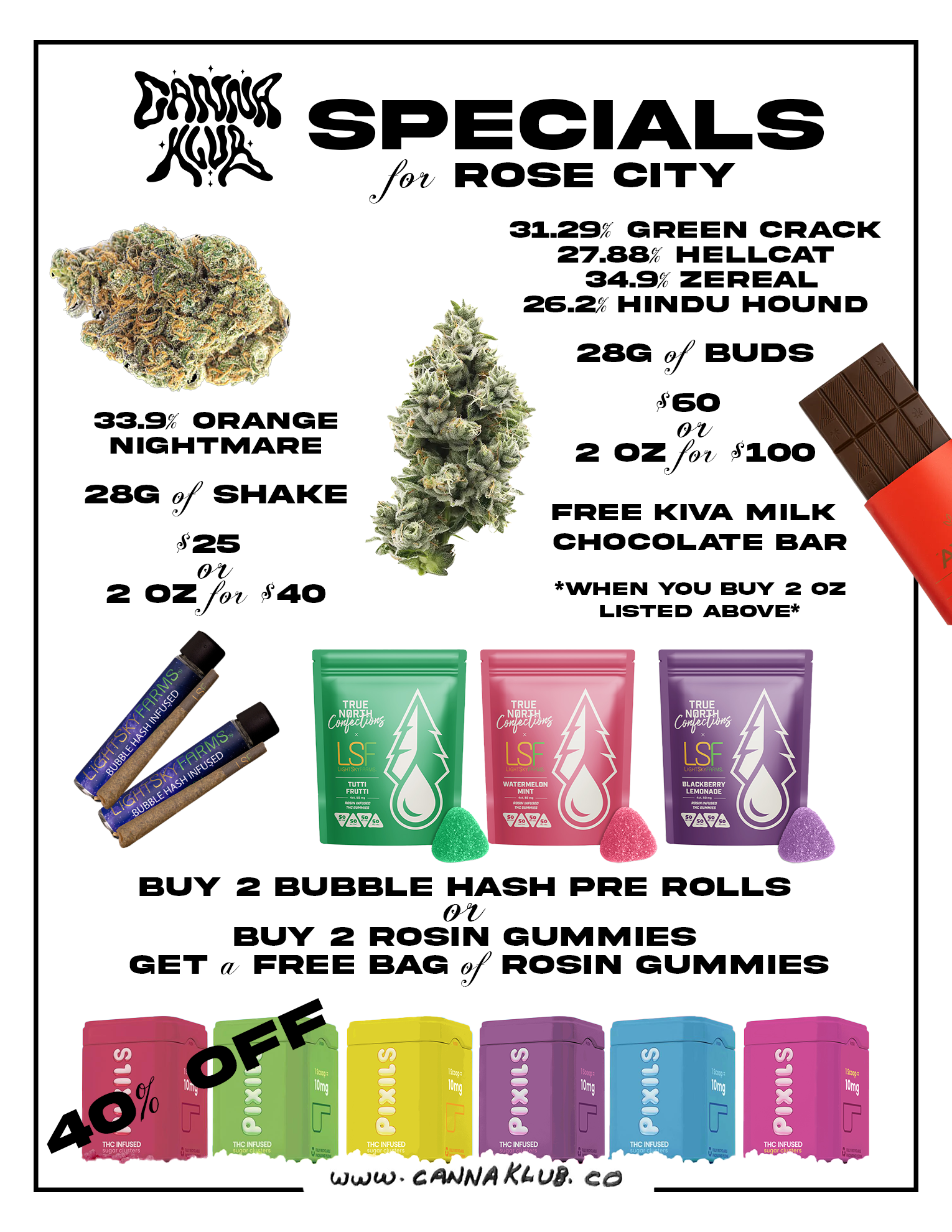 Our sustainability ethos at Canna Klub also applies to our packaging. While we have to package our products in something, we try not to use too much stuff, especially plastic. All of our pre rolls are packed in glass tubes and all our house flower is packed in compostable bags and glass.